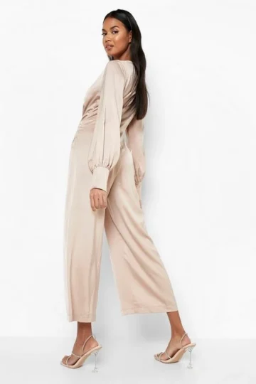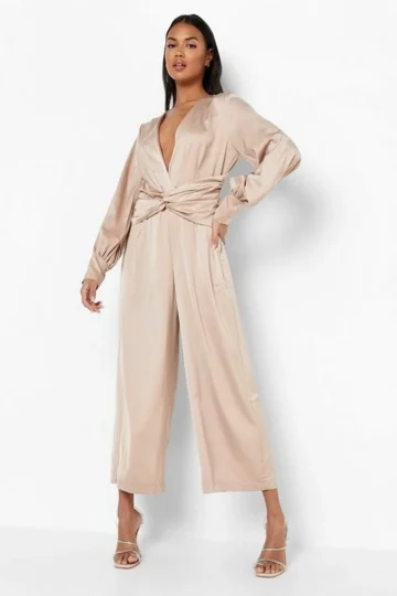 BOOHOO Satin Twist Front Culotte Jumpsuit
