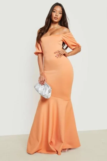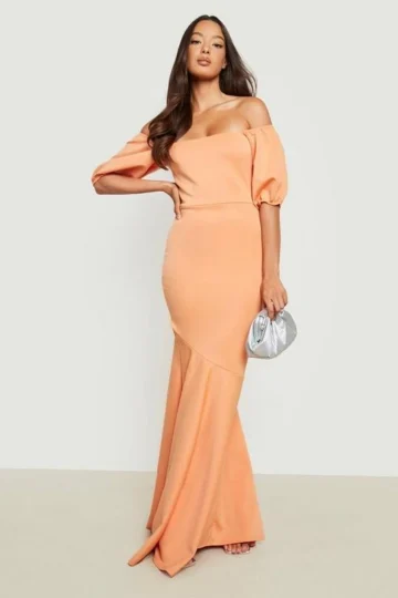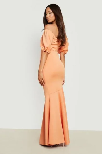 BOOHOO Scuba Puff Sleeve Fishtail Maxi Dress