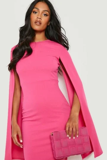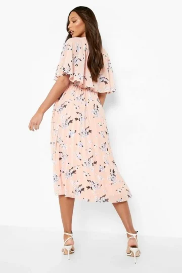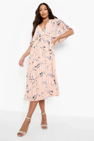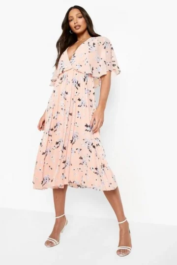 BOOHOO Tall Cape Detail Pleated Occasion Midi Dress