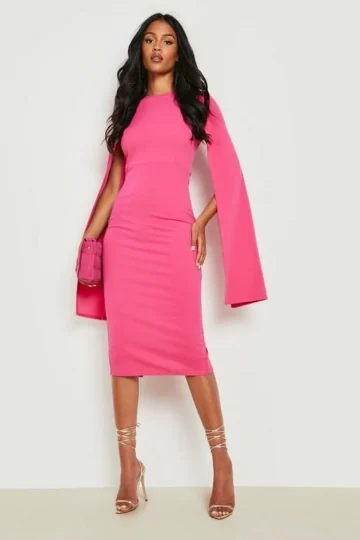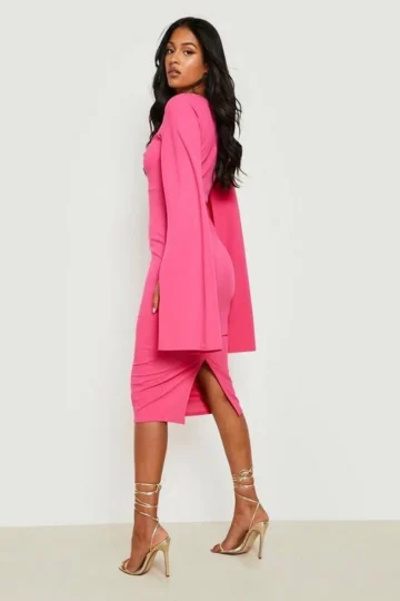 BOOHOO Tall Cape Sleeve Midi Bodycon Dress