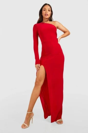 BOOHOO Tall Asymmetric One Sleeve Sleeve Ruched Maxi Dress