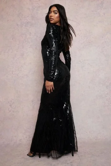 BOOHOO Tall Damask Sequin Plunge Maxi Dress