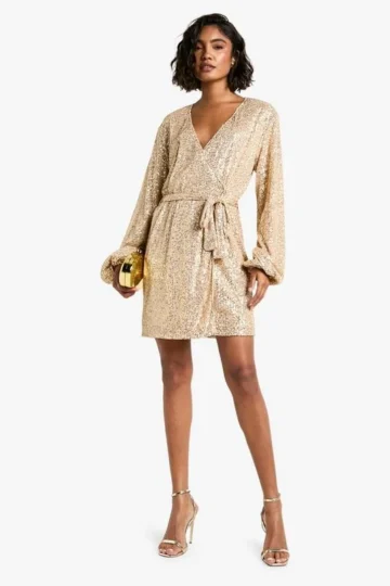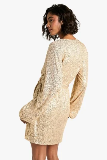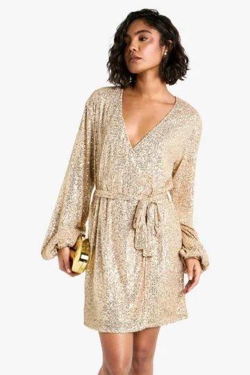 BOOHOO Tall Bright Wrap Over Sequin Dress