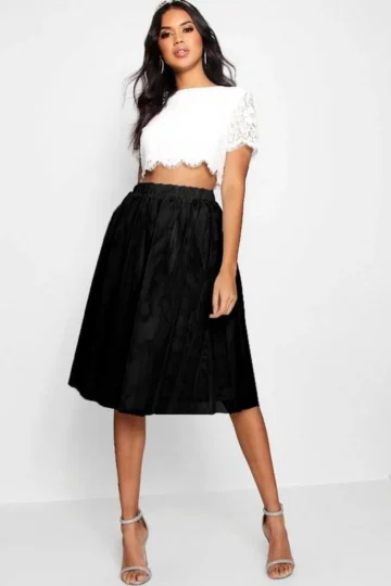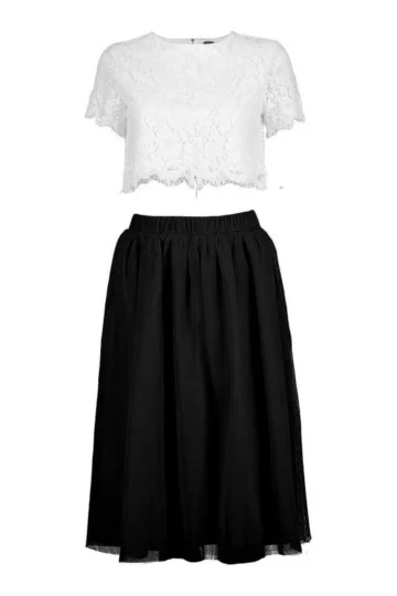 BOOHOO Woven Lace Top & Tulle Midi Skirt