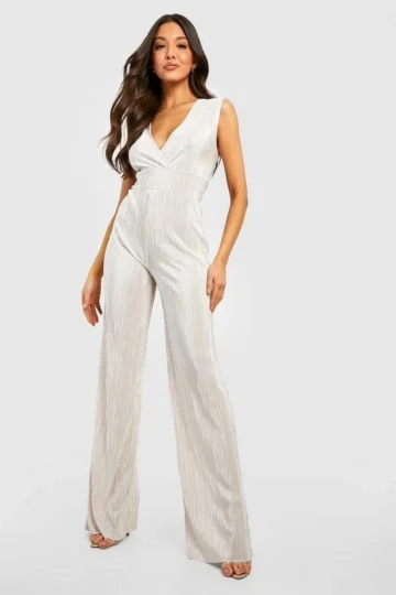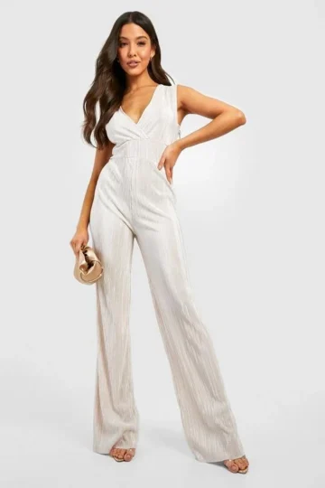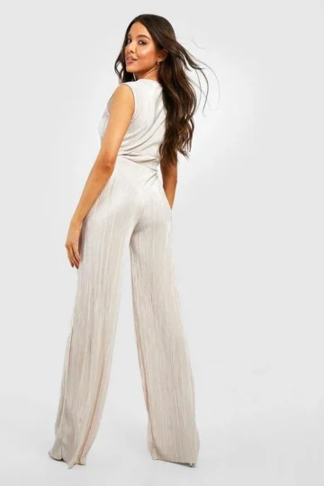BOOHOO Wrap Over Plisse Wide Leg Jumpsuit
