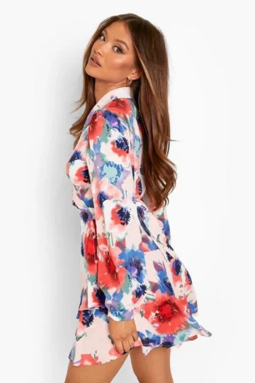 BOOHOO Floral Wrap Detail Mini Skater Dress