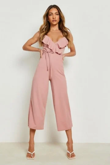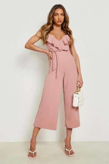 BOOHOO Frill Detail Strappy Culotte Jumpsuit