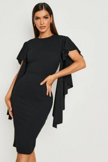 BOOHOO Frill Cape Detail Bodycon Midi Dress