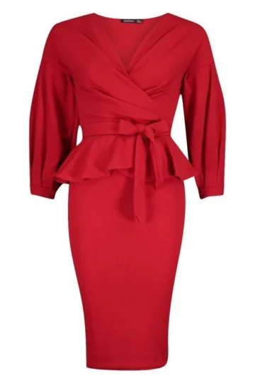 BOOHOO Off The Shoulder Wrap Peplum Midi Dress