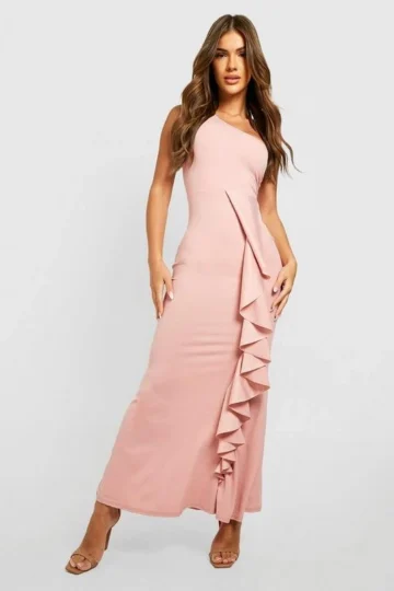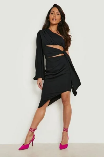 BOOHOO One Shoulder Cut Out Tie Asymmetric Dress