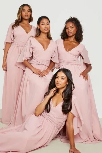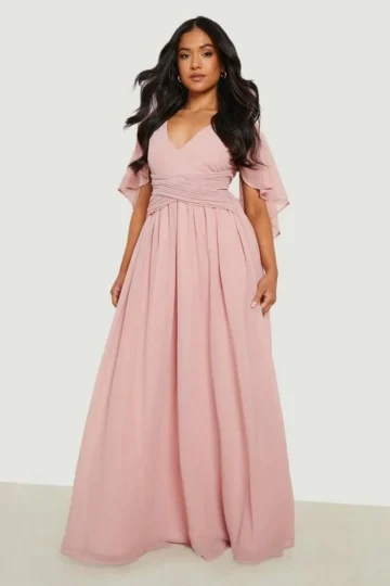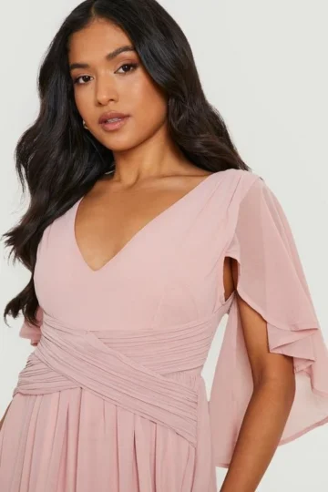 BOOHOO Petite Bridesmaid Chiffon Angel Sleeve Wrap Maxi Dress
