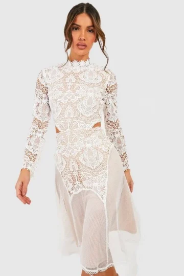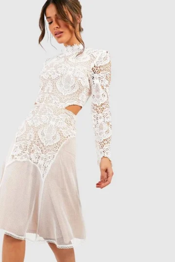 BOOHOO Petite Bandage Square Neck Cut Out Midi Dress