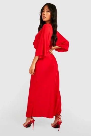 BOOHOO Petite Bias Cut Angel Sleeve Maxi Dress
