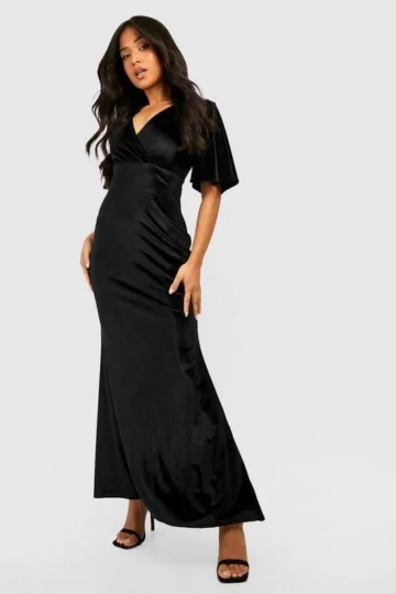 BOOHOO Petite Angel Sleeve Velvet Maxi Dress