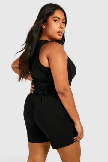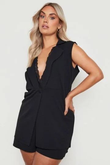 BOOHOO Plus Lace Trim Sleeveless Blazer & Short Set