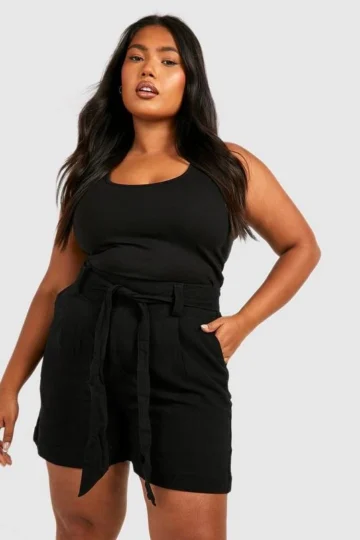 BOOHOO Plus Self Fabric High Waisted Linen Shorts