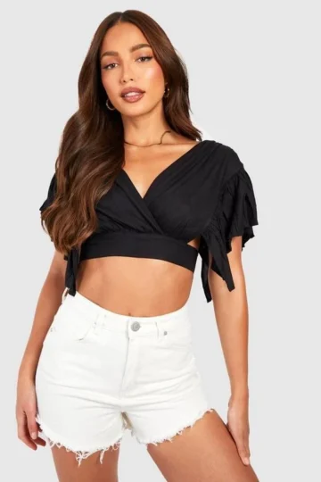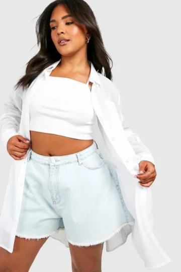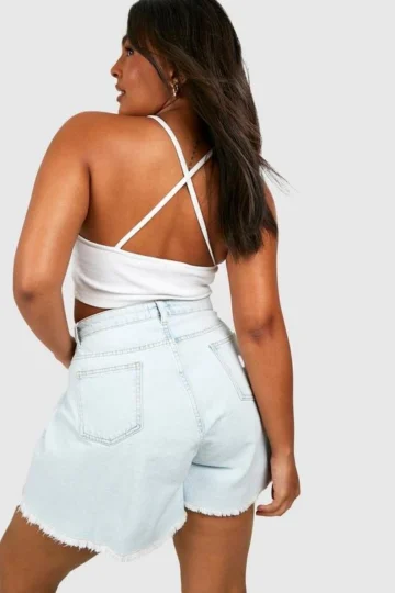 BOOHOO Plus Washed Fray Hem Flippy Jean Short