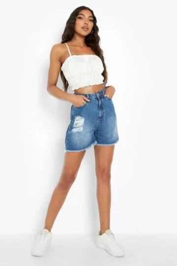 BOOHOO Tall Distressed Frayed Jean Shorts