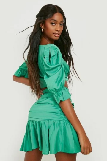 BOOHOO Puff Sleeve Top & Ruched Mini Skirt