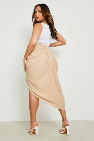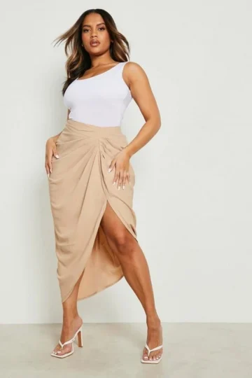 BOOHOO Plus Woven Ruched Front And Back Midi Skirt