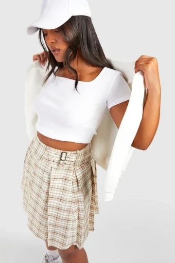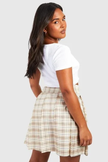 BOOHOO Plus Woven Flannel Buckle Detail Tennis Skirt