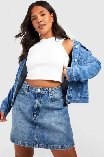 BOOHOO Plus Vintage Wash Denim Mini Skirt