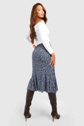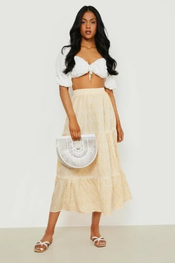 BOOHOO Tall Woven Ditsy Floral High Rise Midi Skirt