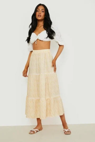BOOHOO Tall Floral Print Tiered Midi Skirt