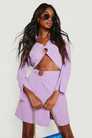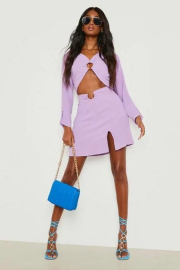 BOOHOO Textured O Ring Crop & Mini Skirt