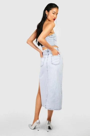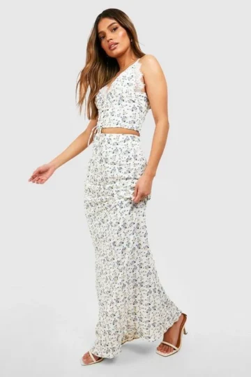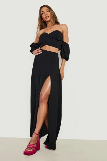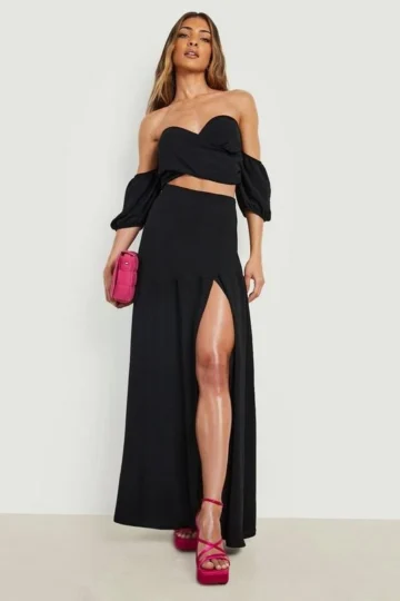 BOOHOO Textured Off The Shoulder Crop & Split Maxi Skirt