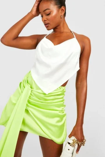 BOOHOO Tall Tie Front Satin Draped Mini Skirt