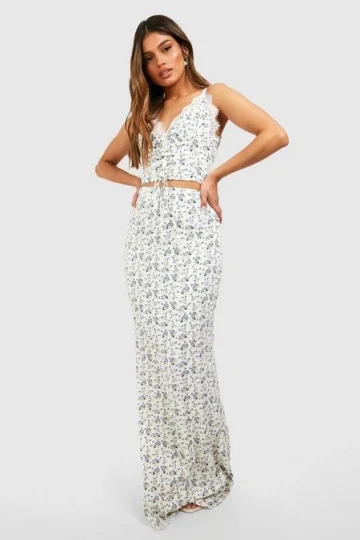 BOOHOO Textured Ditsy Slip Maxi Skirt