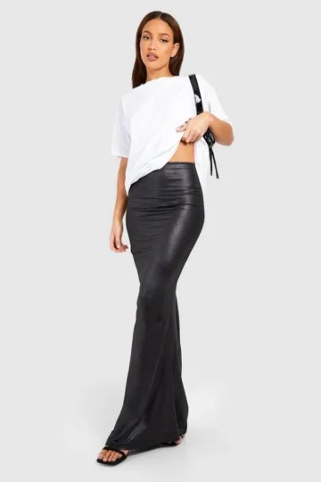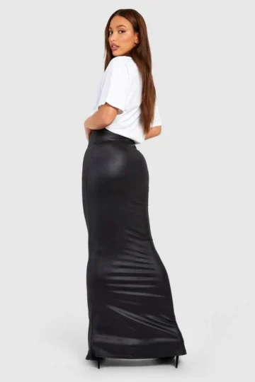 BOOHOO Tall Wet Look Slip Maxi Skirt