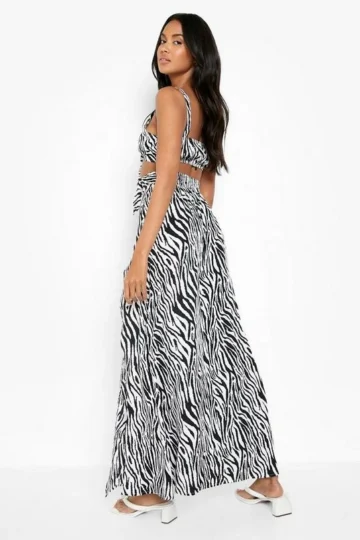 BOOHOO Zebra Print Knot Bralette & Split Maxi Skirt