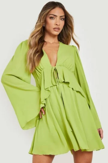 BOOHOO Tie Front Ruffle Blouse & Mini Skirt
