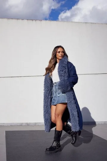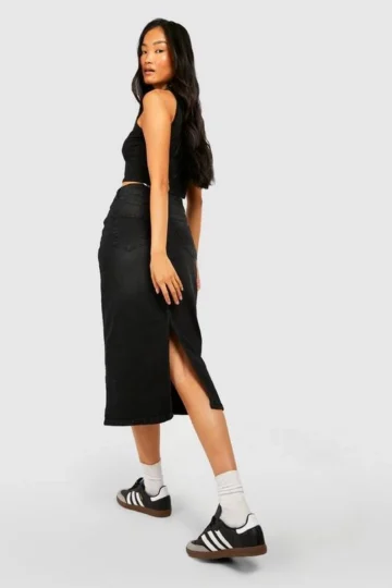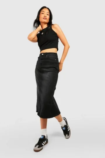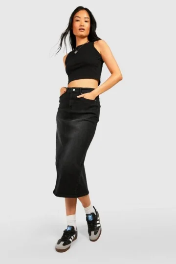 BOOHOO Washed Black Denim Maxi Skirt