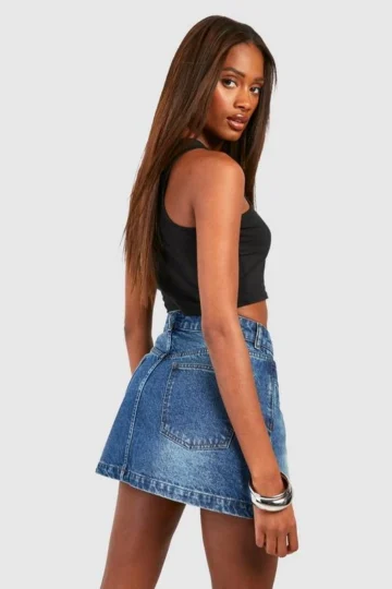 BOOHOO Vintage Wash Denim Micro Mini Skirt