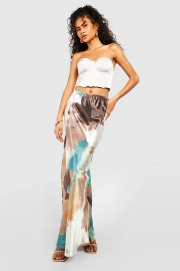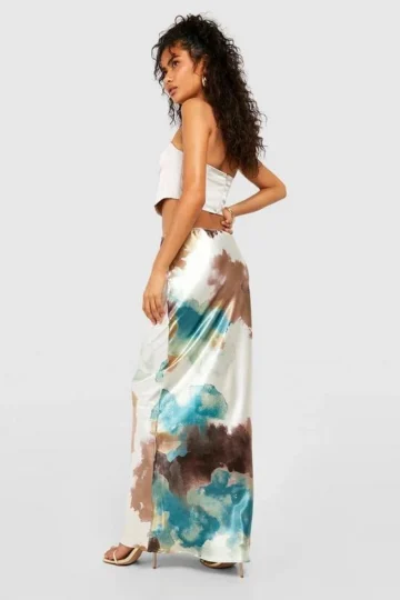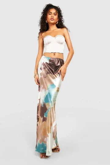 BOOHOO Tie Dye Satin Maxi Slip Skirt