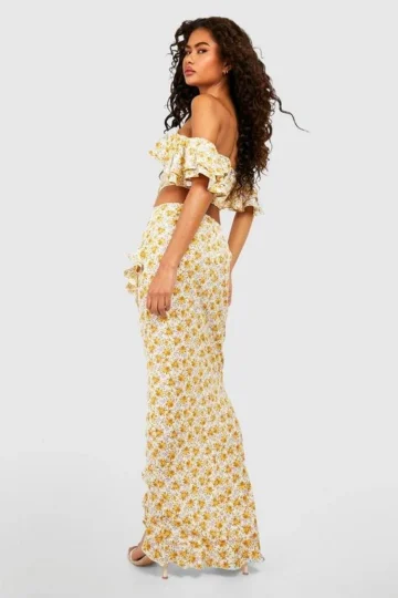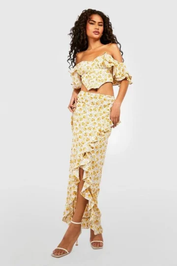 BOOHOO Ditsy Floral Ruffle Woven Maxi Skirt