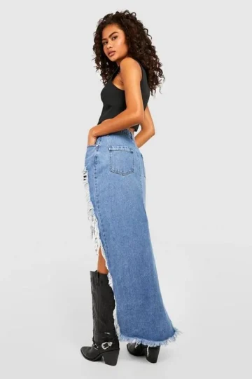 BOOHOO Dark Wash Split Front Denim Maxi Skirt