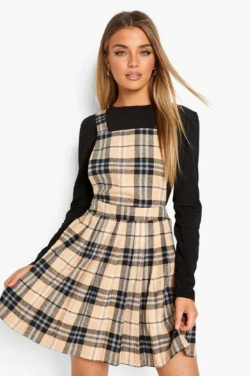 BOOHOO Flannel Print Pleated Skirt Jumper Dress