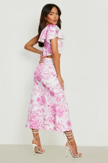 BOOHOO Floral Ruffle Shoulder Crop & Midi Skirt