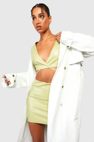 BOOHOO Faux Leather Tie Cropped Shirt & Mini Skirt