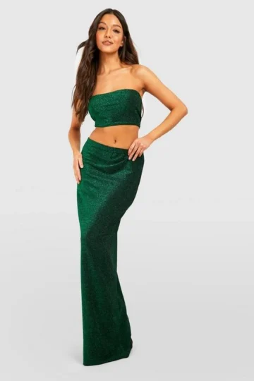 BOOHOO Fine Gauge Bandeau And Maxi Skirt Two-Piece