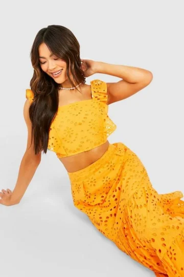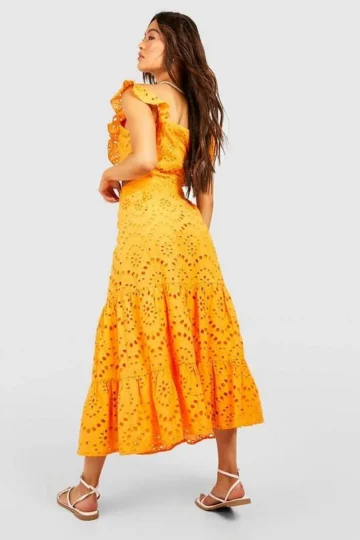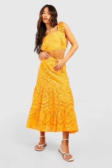 BOOHOO Eyelet Frill Hem Midi Skirt