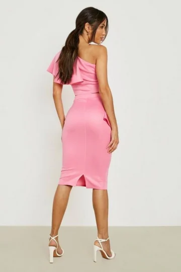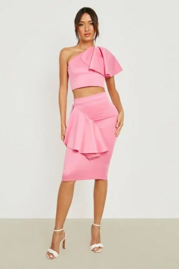 BOOHOO One Shoulder Ruffle Front Crop & Midi Skirt