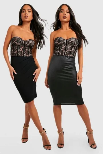 BOOHOO Petite 2 Pack Shiny Midi Skirt