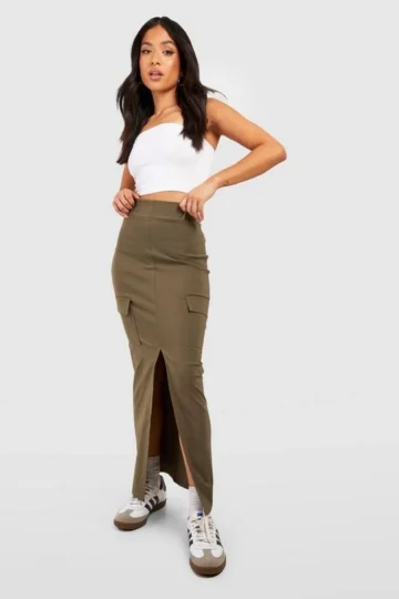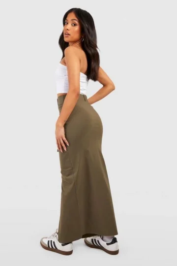 BOOHOO Petite Bengaline Cargo Split Front Maxi Skirt