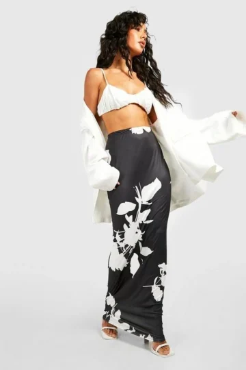 BOOHOO Mono Floral Slip Maxi Skirt