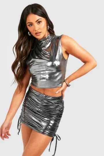 BOOHOO Metallic Ruched Mini Skirt